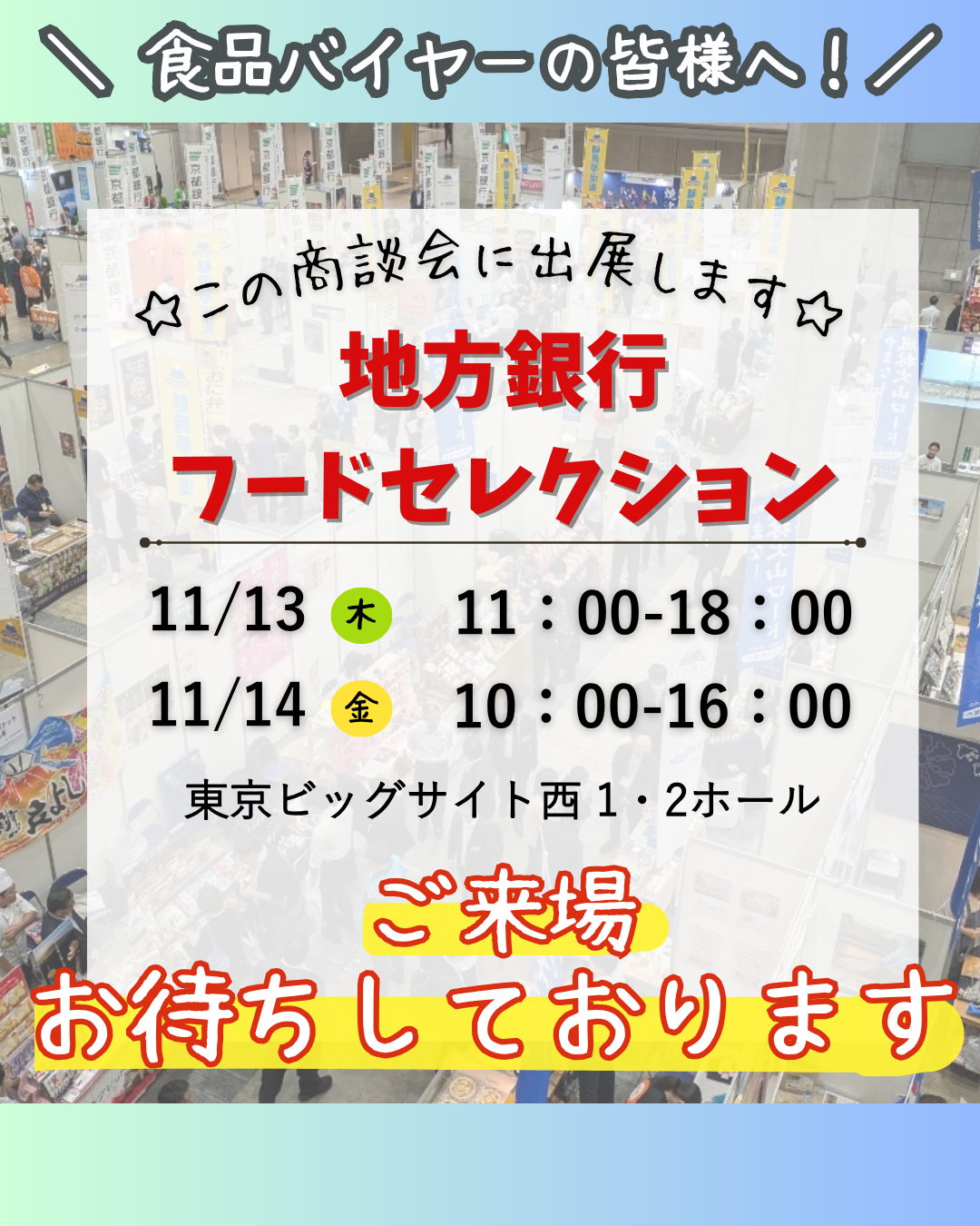 ※本展示会は、食品事業者と食品の仕入企業による商談会です。
